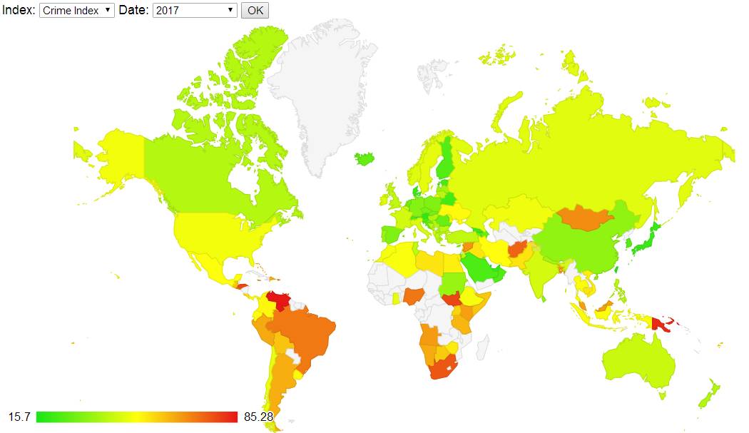 排名 | 國家 | 犯罪指數(shù) |