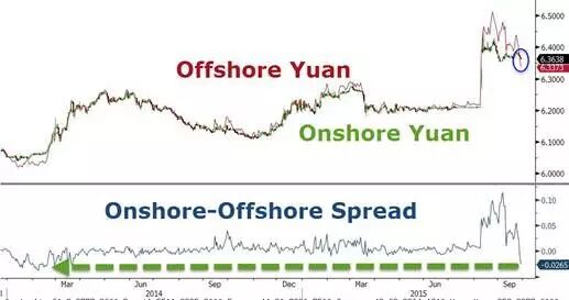 所以CNH也一反常態(tài),在亞洲時段尾盤漲勢兇悍,昨日大漲300點,匯價出現(xiàn)自今年7月來首次強于CNY的情況,在岸離岸甚至出現(xiàn)300點的倒掛,創(chuàng)下2014年初以來最高程度。