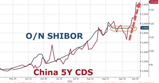 Hibor暴漲之下,上海的Shibor卻紋絲不動(同期中美5年期主權(quán)信用違約掉期點差已經(jīng)升至2013年6月以來最高),市場人士稱這顯示了央行的近期的干預(yù)更多在離岸市場。